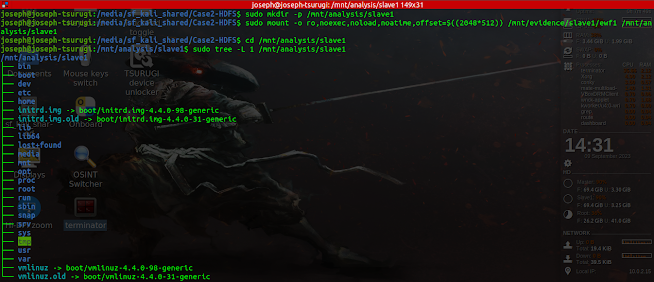 The next step is mounting the partitions that hold the data of evidentiary value, so we can use standard Linux command-line tools to locate and extract artifacts.